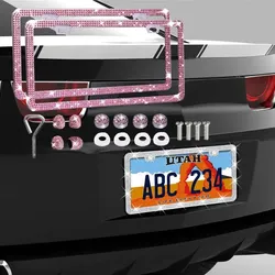 กรอบป้ายทะเบียนคริสตัลเป็นประกายสำหรับรถยนต์ Y0091 RTS กรอบป้ายทะเบียนประดับพลอยเทียมสำหรับผู้หญิงอุปกรณ์ตกแต่งรถยนต์